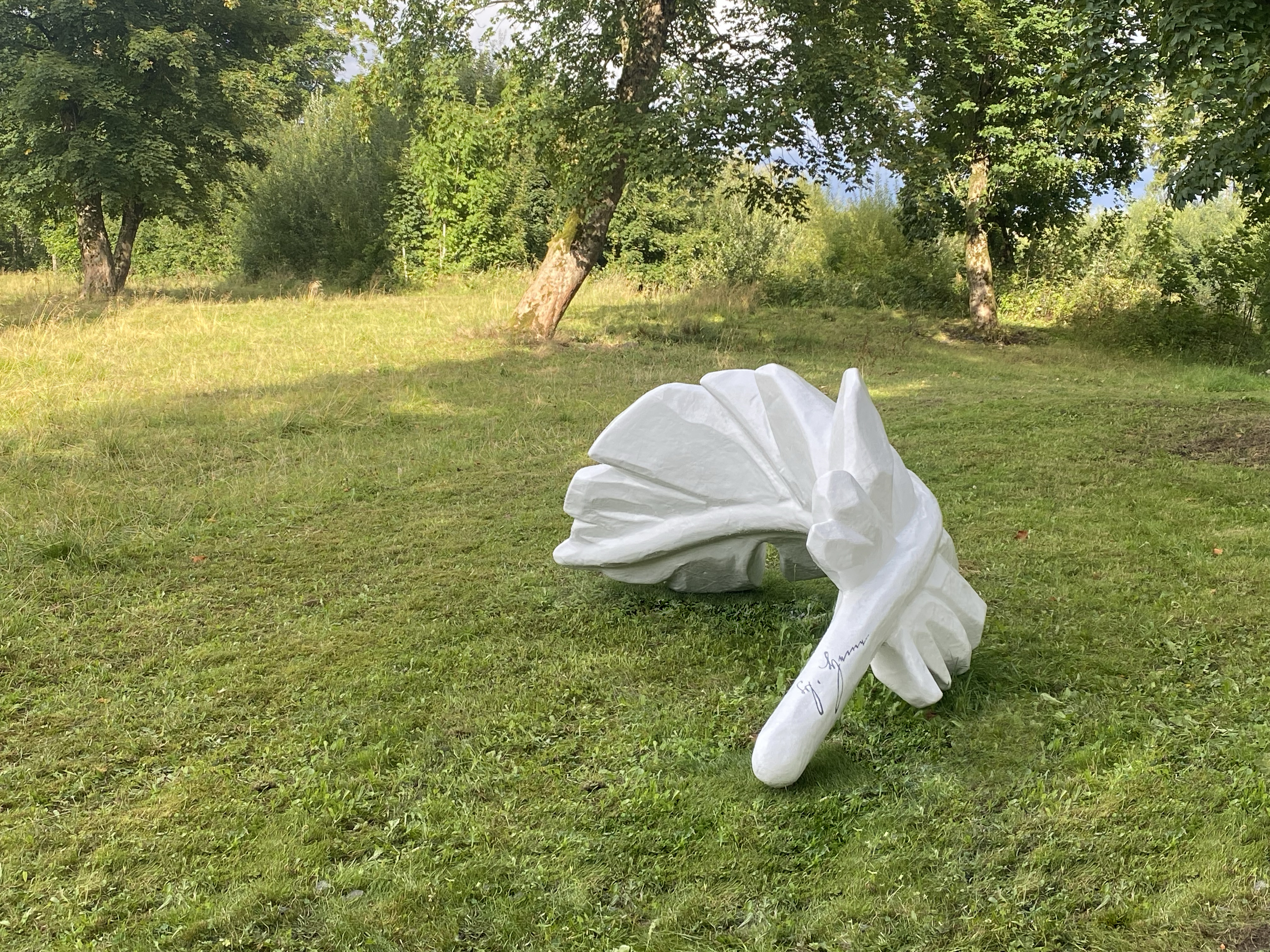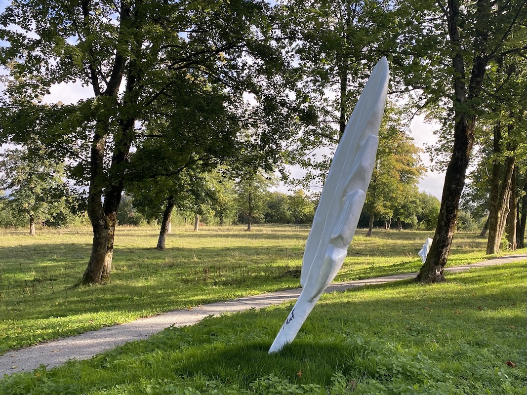 Die Skulpturen in Form von Federn markieren eine Spur in der Landschaft und erinnern an die Feder als Schreibwerkzeug - Signaturen an den Federkielen deuten auf die früheren Besucher hin.