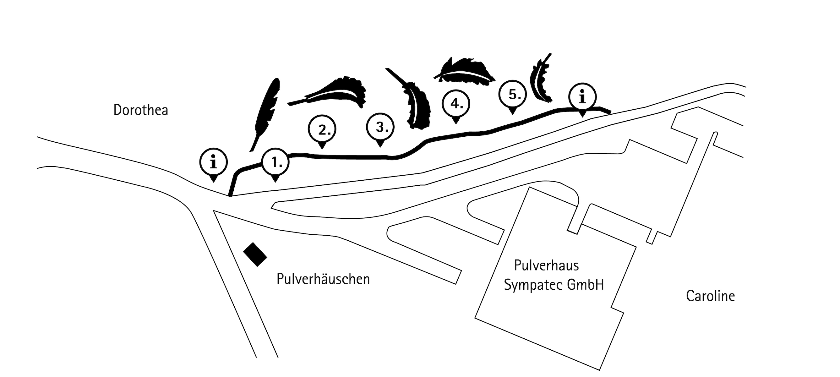 Ausgangspunkt des Skulpturenpfades sind berühmte Besucher der Bergbaugruben Dorothea und Caroline auf dem heutigen Pulverhaus-Areal/Sympatec in Clausthal-Zellerfeld, einst zwei der ertragreichsten Gruben des Oberharzes. Im 18. und 19. Jahrhundert wurden sie von über 20.000 Besuchern besichtigt, darunter Goethe, Alfred Nobel, James Watt Jr. und Heinrich Heine.